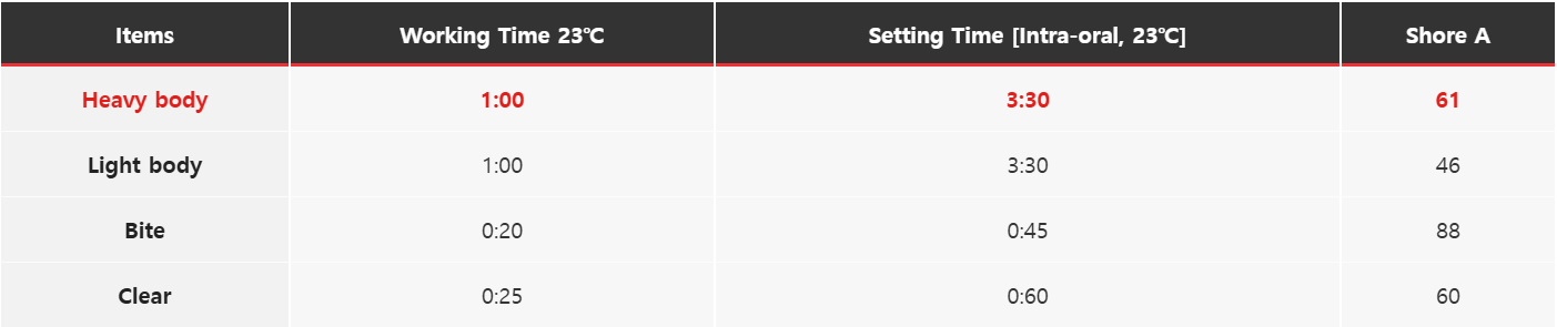 It is used for one-step impression taking of whole teeth or individual tooth with Light body